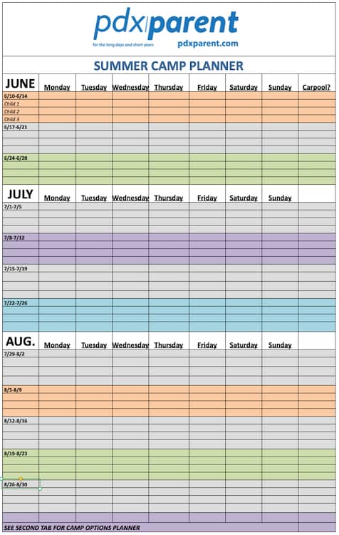 We know planning for summer camps can be overwhelming! That’s why we are offering this FREE downloadable spreadsheet to make life a little easier for Portland families. There are two tabs — one for putting all of your summer camp options in one place and another for your summer calendar. You’ve got this.